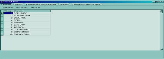 Рисунок 8 – Форма администратора (вкладка «Станции»)