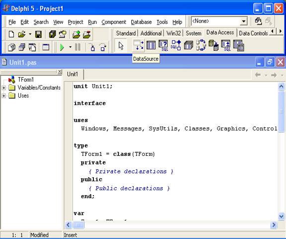 На странице DataAccess(рис. 1) находятся невизуальные компоненты, с помощью которых можно организовать доступ к данным: