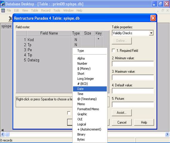 Типы полей таблиц Paradox7