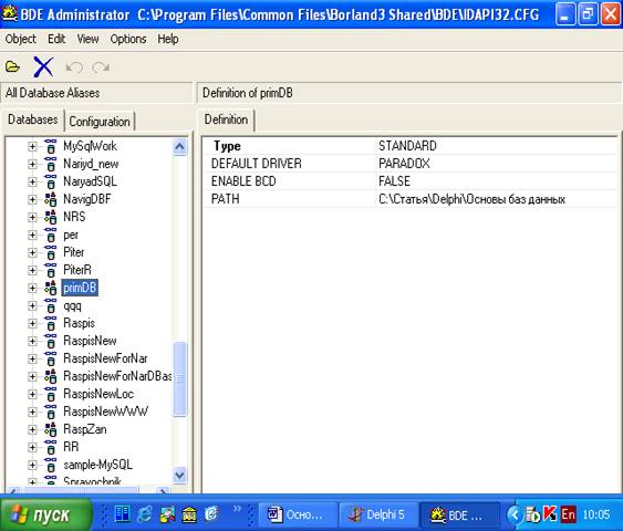 1.7 Программа BDE Administrator
