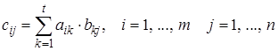 Если А размера m ´t и В размера t ´n , то матрица С = А × В определяется формулой