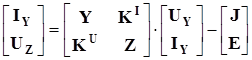 Если первые номера присваиваются Y-, а последующие Z-ветвям, то матрица соединений и вектор-столбец токов могут быть представлены двумя подматрицами: