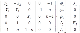 В матрицу проводимостей Y включены проводимости ветвей и и передаточные проводимости. К этим уравнениям присоединяются уравнения многополюсников в Y-форме.