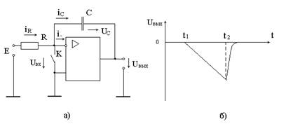 На рисунке 1.3,а показана схема генератора пилообразного напряжения с интегрирующей RC-цепочкой, включенной в цепь отрицательной обратной связи операционного усилителя.