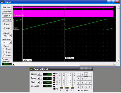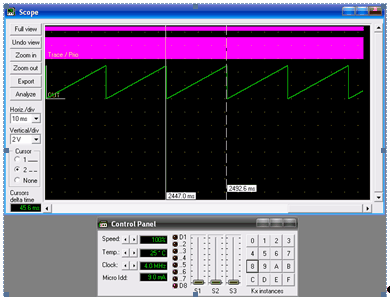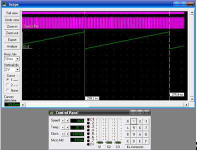 Чтобы поместить полученное значение в регистр сравнения, его необходимо округлить и преобразовать в шестнадцатеричную форму: k=$07A1. Так как почти все рассчитанные значения приходится округлять, это вызывает погрешности в формировании частоты. Анализируя полученные значения частот в пакете VMLAB, можно сделать вывод о том, что погрешности не превышают предел в 1%, который определён в задании.