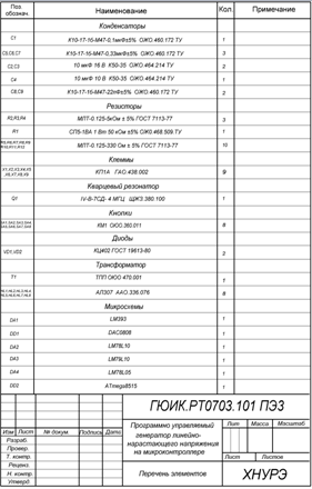 ПЕРЕЧЕНЬ ЭЛЕМЕНТОВ