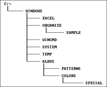6. Файлова система - це сукупність всіх каталогів і файлів на жорсткому диску. Файлова система є складовою частиною DOS, яка відає доступом до каталогів і файлів, розподіляє для них дисковий простір. Одна з найважливіших функцій DOS - це організація файлової системи. Приклад дерева каталогів наведений нижче: