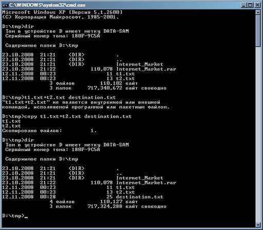 3. Як об’єднати два файли в один за допомогою команд операційної системи.