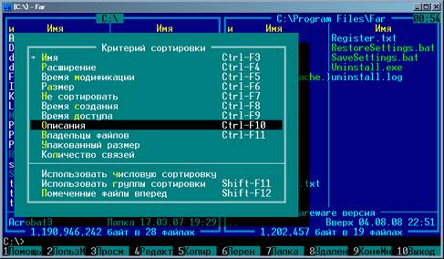 5. Як упорядкувати файли за різними характеристиками в Norton Commander?