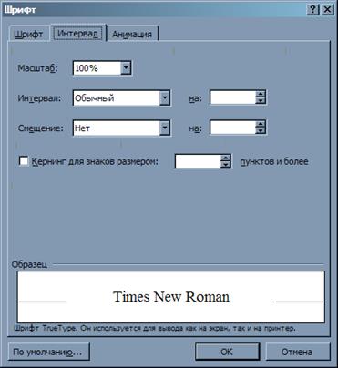 У цьому вікні можна задати ряд параметрів: масштаб, інтервал, величину інтервалу, зміщення символів вгору або вниз та інші.