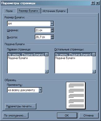 20. Як у редакторi Word встановити розмiр аркушiв паперу, на яких буде друкуватися документ?