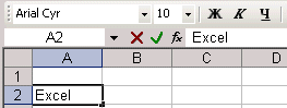 Вміст активної (виділеної в даний момент) комірки Excel завжди з'являється в рядку формул. В процесі введення або редагування даних в комірку, в рядку формул з'являються три кнопки: