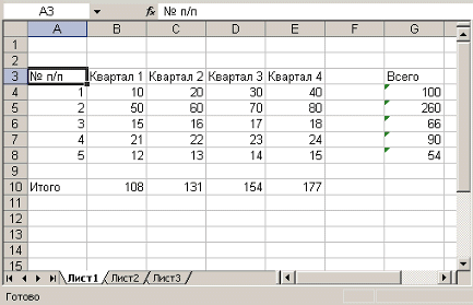 Активна область - це прямокутник, який вкладає в себе всі стовпці і рядки листа, що містять непорожні комірки. [6, с.112].