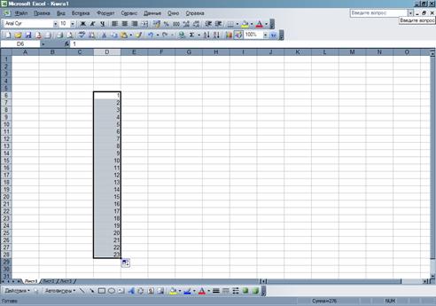 24. Як в Excel виконати автоматичне заповнення комiрок таблицi?