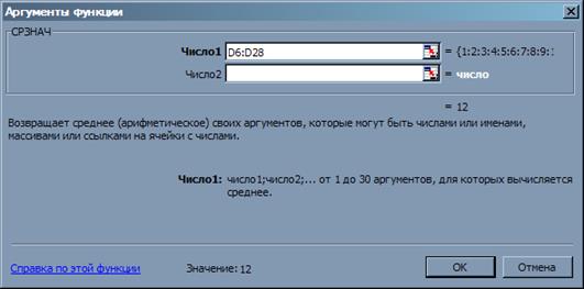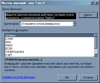 Рис 40. Вікно для вибору функції підрахунку середнього арифметичного