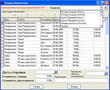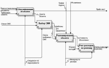 Основными задачами, стоящими перед менеджером по рекламе являются своевременная подача и учет рекламы объектов недвижимости и, учет расходов на рекламу по каждому договору, а также подведение итогов подачи рекламы предприятия в целом.
