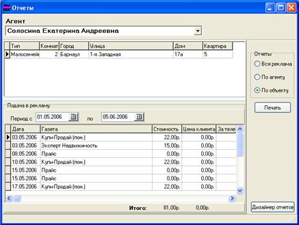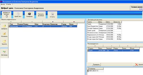 В рамках данной работы была осуществлена автоматизация работы менеджера фирмы по рекламе недвижимости.