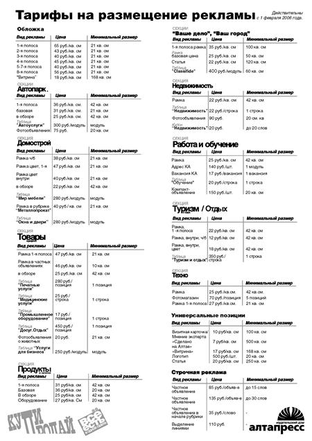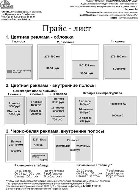 Приложение Д Прайс-лист газеты «Недвижимость Алтай»