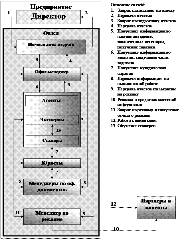 Приложение И Взаимосвязи между подразделениями компании ООО «Деловая недвижимость»