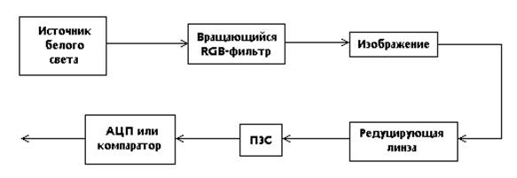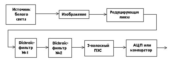 Рис.3. Блок-схема сканера с dichroic-фильтрами.