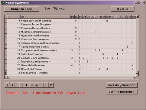 - Програма повинна забезпечити ведення обліку відвідування занять учнями гімназії.