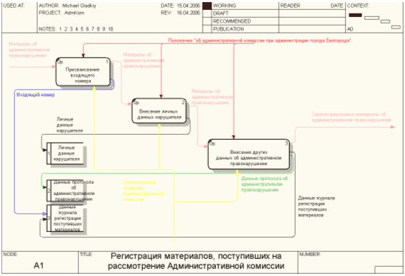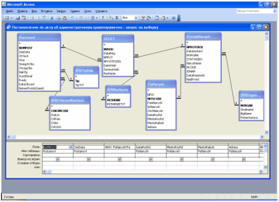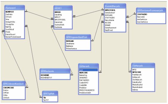 · Проектирование структуры базы данных для хранения информации о поступивших на рассмотрения материалах, физических и юридических лицах совершивших административные правонарушения и иных данных, необходимых для ведения внутреннего документооборота Административной комиссии;