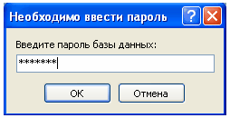 Перед началом работы программы появляется окно, в котором вводится пароль. Это сделано с целью пресечения попыток несанкционированного доступа к данным, содержащимся в базе данных (см. рис.4.9).