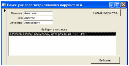 Рис. 4.2.5. Проект формы поиска нарушителей.
