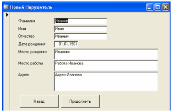 Рис. 4.2.6. Проект формы создания нового нарушителя.