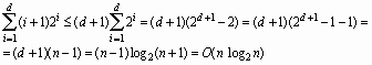 Когда n случайных значений повторно вставляются в бинарное дерево поиска, можно ожидать, что дерево будет относительно сбалансированным. Наилучшим случаем является законченное бинарное дерево. Для этого случая можно оценить верхнюю границу, рассмотрев полное дерево глубиной d. На i-ом уровне (1≤i≤d) имеется 2i узлов. Поскольку для помещения узла на уровень i требуется i+1 сравнение, сортировка на полном дереве требует (i+1) * 2i сравнений для вставки всех элементов на уровень i.