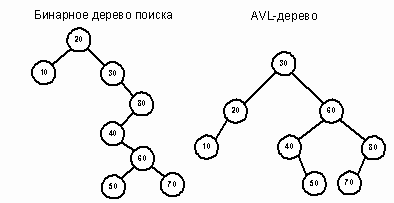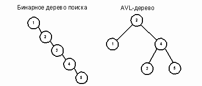 Бинарное дерево поиска имеет высоту 5, в то время как высота АВЛ - дерева равна 2. В общем случае высота сбалансированного дерева не превышает O(log2n). Таким образом, АВЛ - дерево является мощной структурой хранения, обеспечивающей быстрый доступ к данным.