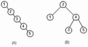 Новые методы вставки и удаления в классе АВЛ - деревьев гарантируют, что все узлы останутся сбалансированными по высоте. На рисунках 1 и 2 показаны эквивалентные представления массива АВЛ - деревом и бинарным деревом поиска. Рисунок 1 представляет простой пятиэлементный массив А (A[5] = {1,2,3,4,5}), отсортированный по возрастанию. Рисунок 2 представляет массив B (B[8] = {20, 30, 80, 40, 10, 60, 50, 70}).