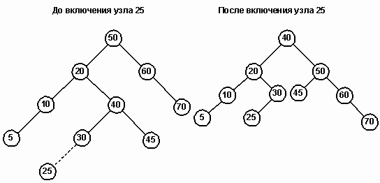 В некоторых случаях при добавлении/удалении может потребоваться значительная перестройка дерева, не гарантирующая логарифмической сложности. Поэтому Г.М. Адельсон - Вельский и Е.М. Ландис ввели менее строгое определение сбалансированности и доказали, что при таком определении можно написать программы добавления/удаления, имеющие логарифмическую сложность и сохраняющие дерево сбалансированным.