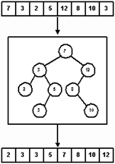 Для каждого узла дерева память должна выделяться динамически, поэтому худший случай не лучше, чем сортировка обменом.