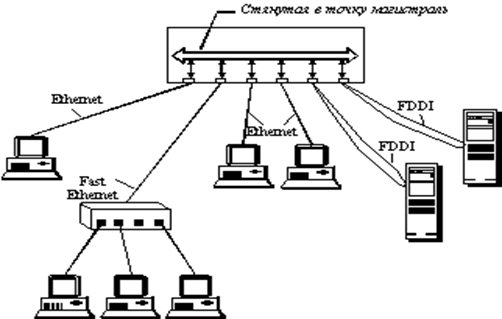 4.1.1 Стянутая в точку магистраль на коммутаторе
