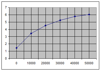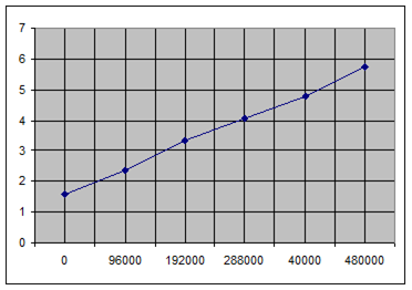 График представляет собой линейную зависимость. Если луч не пересекает сцену, то после сравнения с самой большой оболочкой для многих лучей сразу же будет установлено, что они ничего не пересекают. Поэтому время рендеринга будет определяться временем на обработку лучей, пересекающих сцену. А поскольку время (t) обработки каждого из лучей в среднем одинаковое. То время будет носить зависимость n*t, где n - число пикселей. А это линейная функция от n.