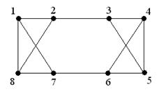 N = 8; d (vi ) = 3; 3 ≤ 8/2 = 4 не гамильтонов граф, но существует гамильтонов цикл: M = (1, 2, 3, 4, 5, 6, 7, 8, 1)