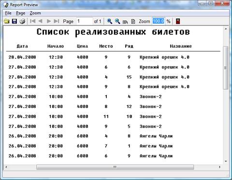 Программный продукт в дальнейшем, возможно, будет использован для автоматизации работы кассы кинотеатра.
