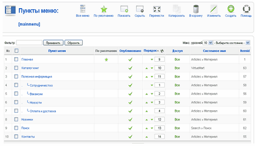 2.3.5Створення меню on-line магазина