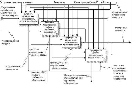 Целью построения данной функциональной модели является анализ возможности и путей применения концепции CALS в жизненном цикле турбин и турбинного оборудования.