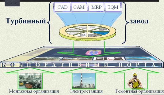 Для интеграции подсистем, базирующихся на базе данных изделий, и выполняющих поддержку основных, производственных функций турбинного завода, предназначена система управления данными об изделиях – PDM-система (Product Data Management).