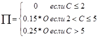 П= Если (С <= 2; 0; если(С>5;0.25*O;0.15*O))