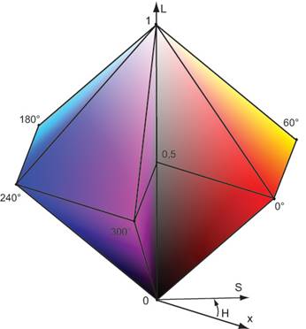 Данная модель является "естественным языком" цвета для электронных устройств ввода изображения (мониторы, сканеры, цифровые камеры), в которых воспроизведение цвета основано на излучении или пропускании света, а не на его отражении от подложки при создании изображения.