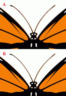 Рис. Увеличенный фрагмент растрового (А) и векторного SVG (Б) изображений.