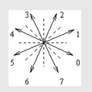 На рисунке показан обычный цепной код, использующий 8 направлений.