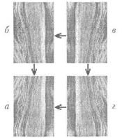 Соединение четырех изображений: а — исходный фрагмент; б— фрагмент, отраженный сверху вниз; в— фрагмент, отраженный сверху вниз и слева направо; г— фрагмент, отраженный слева направо.