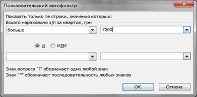 В діалоговому вікні розширеного фільтра задати: