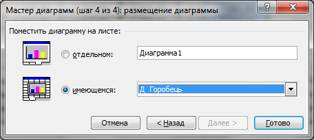 Крок 4 Вибрати варіант розміщення діаграми (на поточному або окремому аркуші)