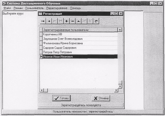 формированием модели обучаемого для тех, кто регистрируется впервые или вызовом модели зарегистрированного пользователя.