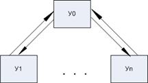 Основа последовательной сети с радиальной топологией составляет сервер, к которому подсоединяются рабочие станции, каждая по своей линии связи. Вся информация передается через центральный узел, который ретранслирует, переключает и маршрутизирует информационные потоки в сети. Используются и широковещательные радиальные сети с пассивным центром, в которых вместо центрального сервера устанавливается КУ (обычно концентратор, hub), обеспечивающее подключение одного передающего канала сразу ко всем остальным. Помимо концентратора существуют и другие КУ.